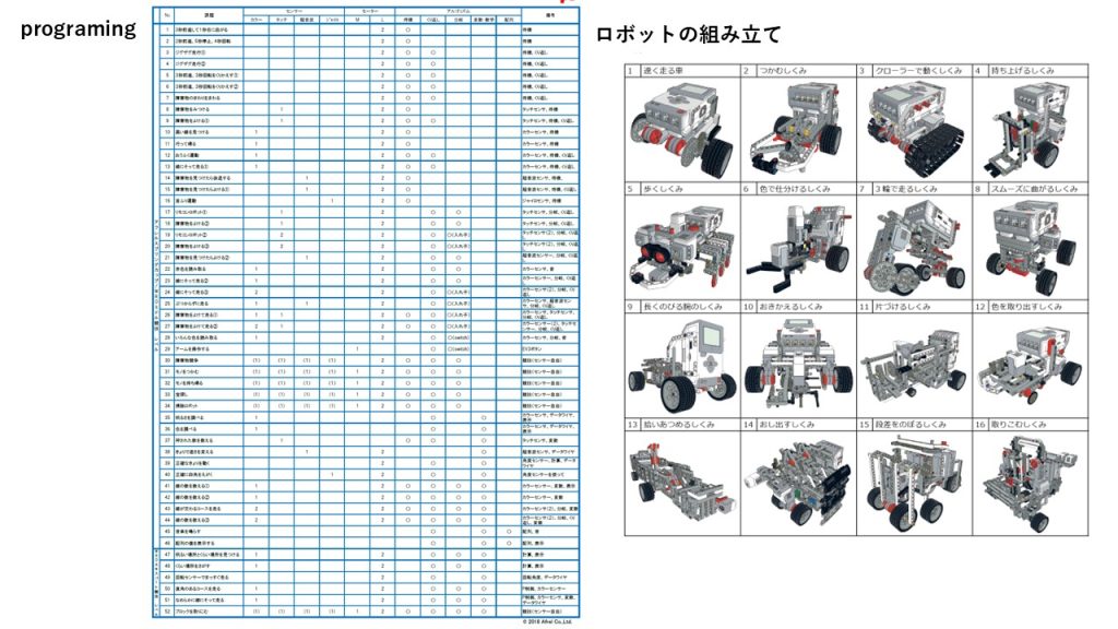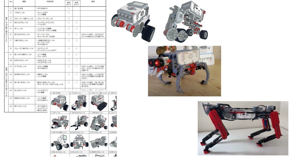 EV3を使った簡単な組み立てから、少し難しい組み立て、ついには動物の組み立てなどもやっていきます。